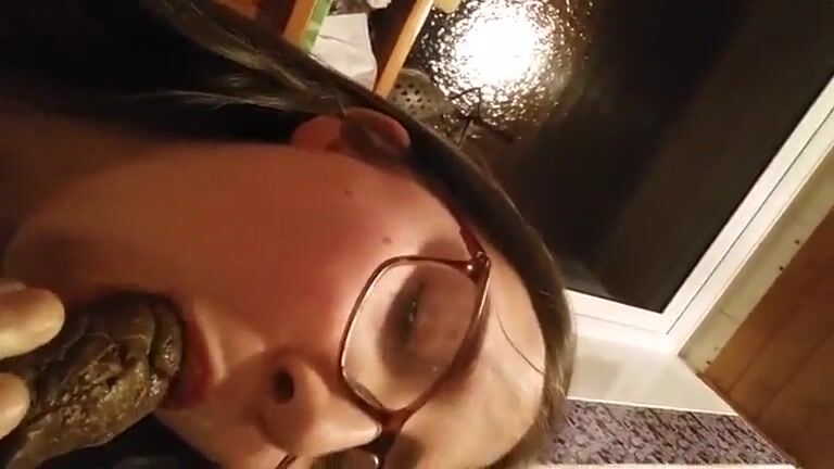 Young lovely brunette girl eating big shit